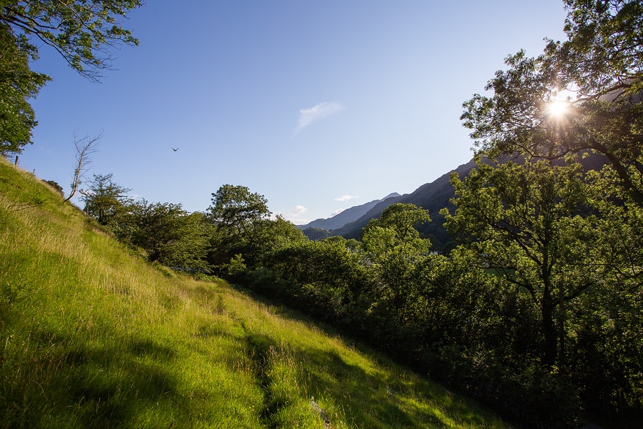 Biological interest began ten thousand years ago: when the last ice age came to an end and the glaciers retreated most of the uplands were covered with tundra-like vegetation. But as the climate warmed grasses, herbs and shrubs moved in. Trees were next, at first thin and scrubby but in time this primitive woodland turned into sessile oak forest, and there are still stands of this ancient woodland today. According to the SSSI designation: “The Atlantic woodlands of southern Snowdonia form one of the most important areas for woodland nature conservation in Europe”, as this “temperate rainforest” with damp, humid climate supports an abundance of ferns lichens, mosses and liverworts. The Nantgwynant area has one of the highest rainfalls in Snowdonia with over 2 metres of rain falling annually. Many acres of our woodland are fenced off from sheep, thousands of trees have been planted and a tree nursery established based on local seeds. Conservation has always been one of our core values, so the campsite is not over developed and we strive to maintain local wildlife and regularly test for water quality. The climate emergency has made carbon sequestration desperately urgent as our Carbon page describes. The Rewilding Britain organisation have produced a very useful report you can access here.