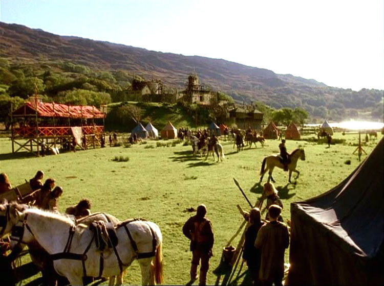 Merlin was a 1997 feature film partly filmed at Llyn Gwynant, where the morraine behind our toilet block hosted fabulous Camelot, with Sam Neill playing Merlin as a flesh-and-blood fellow of real passion, powerless to undo the spell of a rival who has imprisoned Merlin’s great love, Nimue.